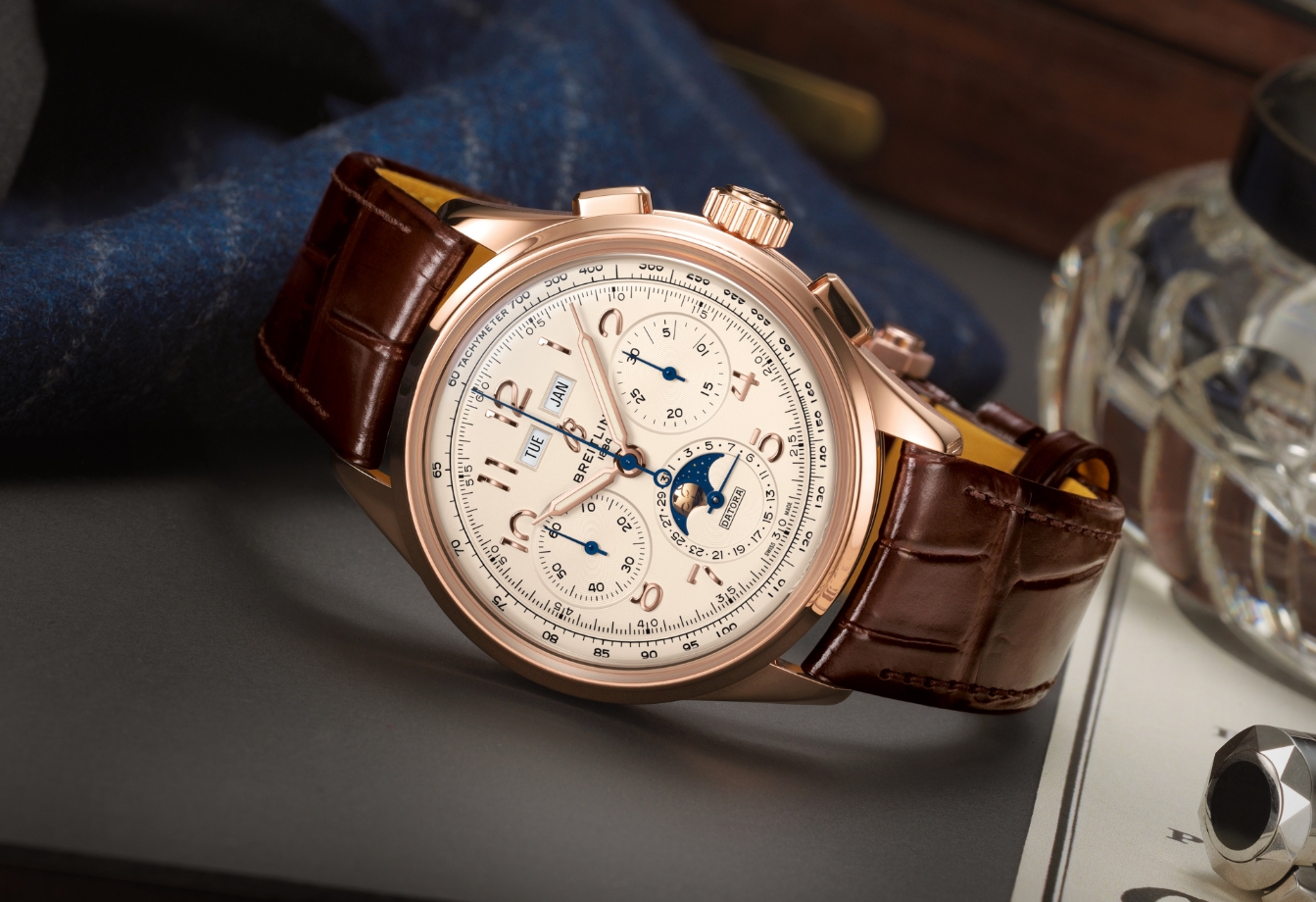 Here, we have colorful, beautifully rendered dials (typography nerds will have a lot to appreciate) with applied arabic numerals and a much more traditional approach to chronograph movement execution – perhaps just as Willy Breitling himself would have once wanted it. And yes, that’s indeed a complete calendar in the mix. Indeed, it’s a strikingly intelligent offering and a far cry from the 1:1 clone Breitling watches that many might have once known, but as the brand continues to mature and peel back the many layers of its back catalog, we learn something that Breitling scholars have known all along: before the advent of the jet age, and before sport diving became mainstream, the brand enjoyed a rich period of very elegant, classical chronographs around the middle of the last century that fully embraced watchmaking’s more traditional values.