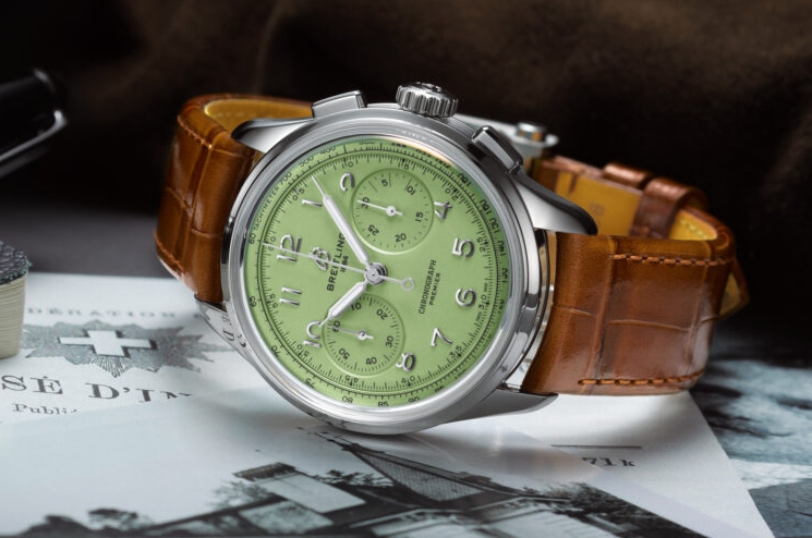 While the automatic calibre B25-powered Premier Datora 42 complete calendar (refresher: that’s hour, minute, second, day, date, month, and moonphase) might get most of the spotlight this week, the sneaky show-stealer might be the entry-level Premier B09 Chronograph 40 which pays tribute to the Léon Breitling’s earliest chronographs which pioneered the implementation of a tachymeter scale for measuring speed. A deceptively simple affair clad in a truly gorgeous “Pistachio” green dial, this reference is powered by Swiss Breitling copy watches’ manufacture B09 handwound chronograph movement, which we’ve seen rolled out in a smattering of offerings thus far, including the 1959 Navitimer re-issue and the AVI ref. 765 re-issue.